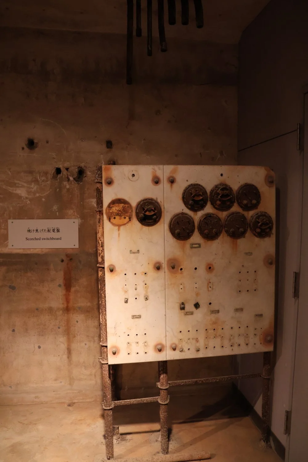 Scorched switchboard, Honkawa Elementary School Peace Museum, Hiroshima